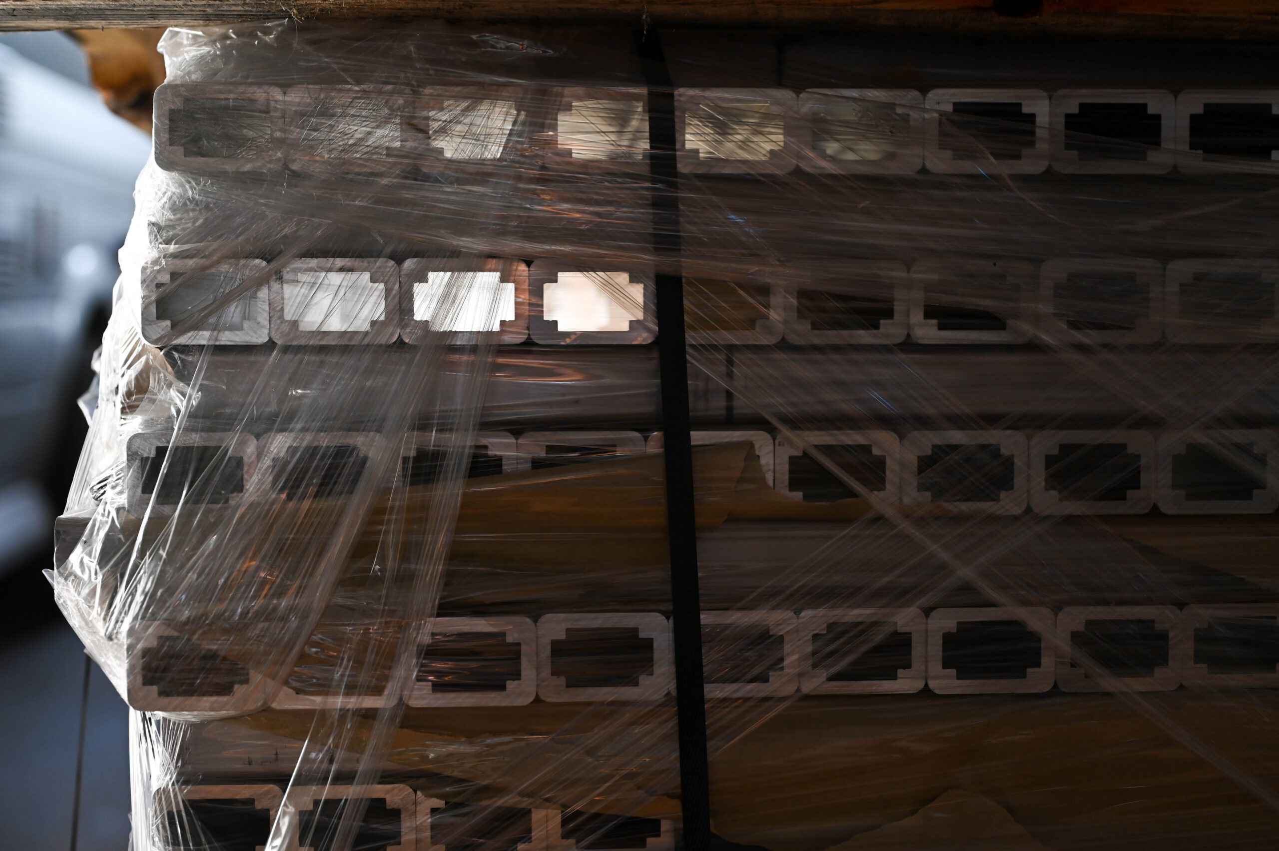 It all starts with aluminum, which is heated and pushed through a custom-shaped mold (called a die). This creates long, uniform pieces—kind of like squeezing pasta into specific shapes. These custom extrusions are made in Utah and then shipped to the QuikrStuff factory in Grand Junction, Colorado.