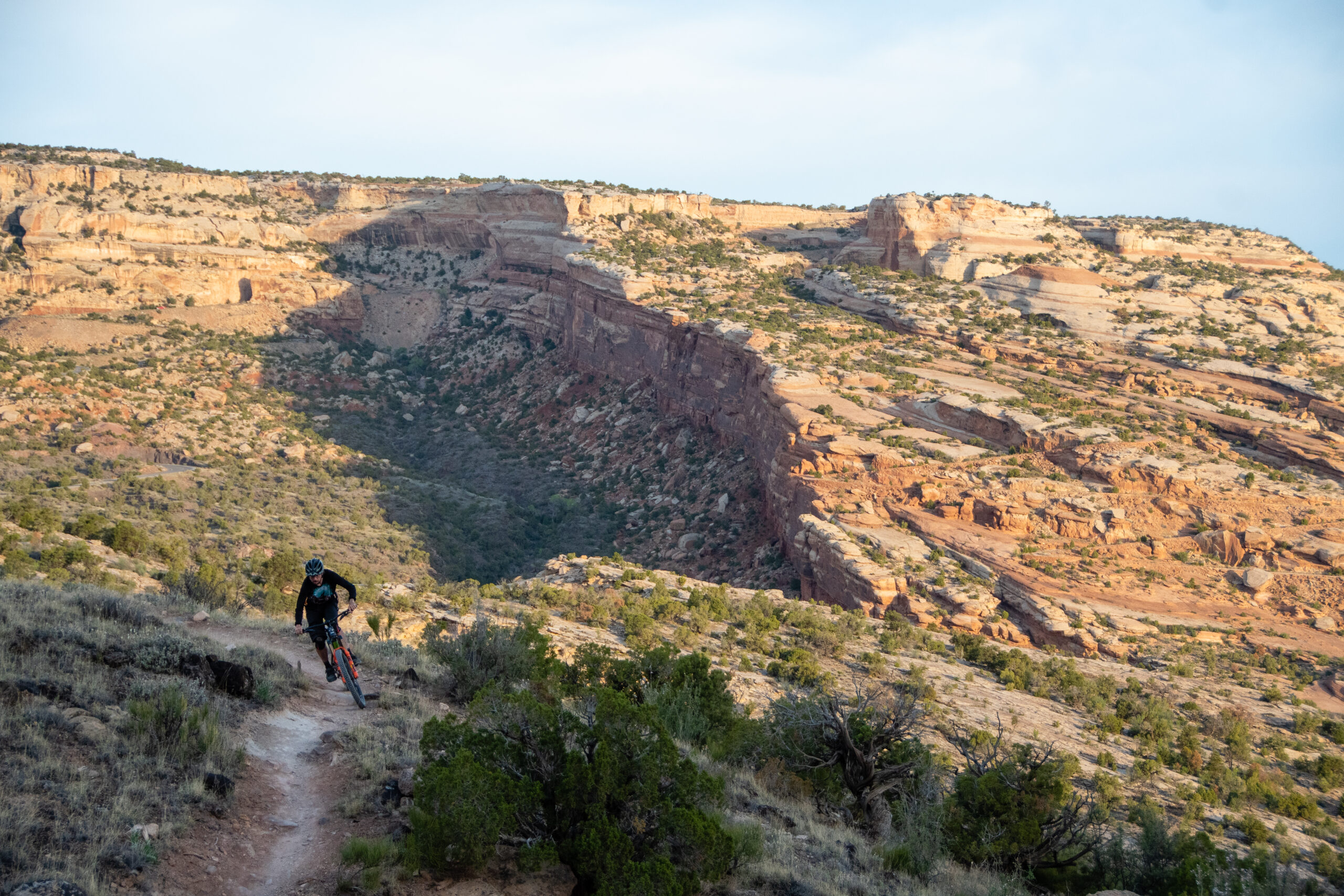 Local Daniel Rhodes riding Andy’s Trail, with the scenic Colorado National Monument rising in the distance. Photo courtesy Eric Cook / Big Ship Media House